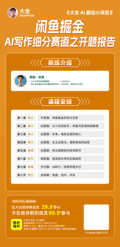 一个让你可以立马获取收入的项目:「闲鱼掘金AI写作细分赛道之开题报告」,顶尖教练带队,还有直播答疑!