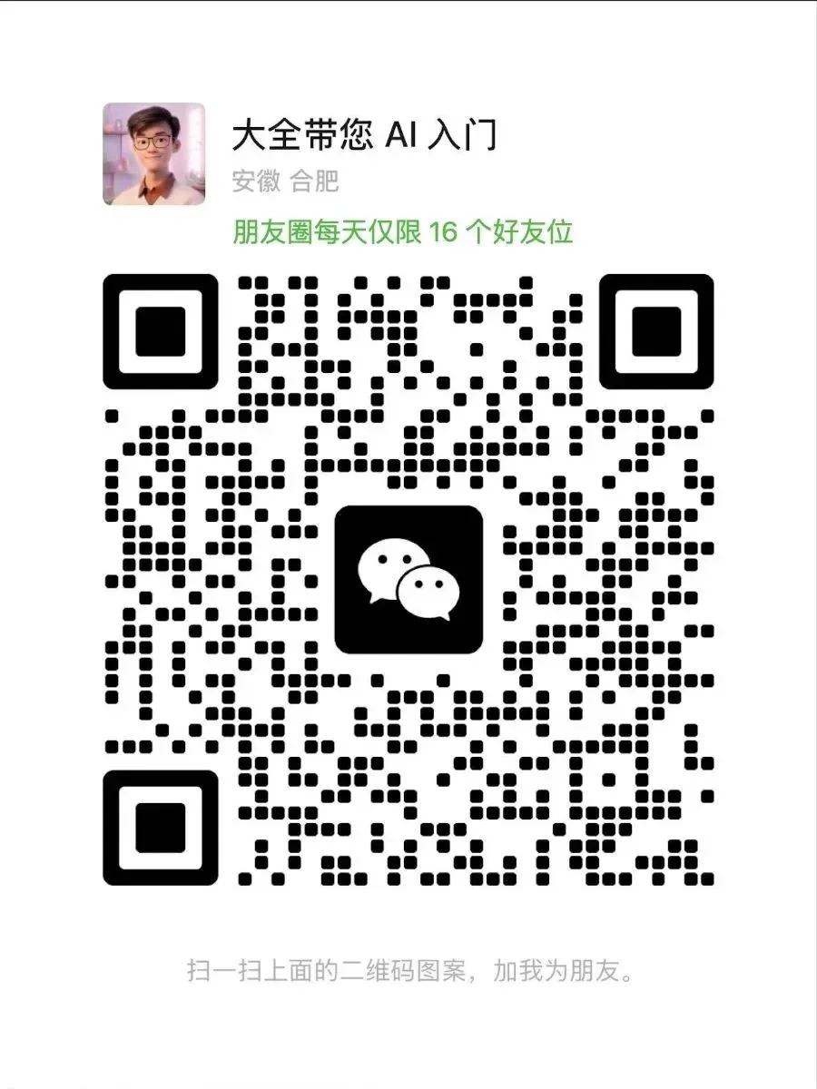 加微信:daquan365 (或扫描下方二维码)一定备注:小报童,免费拉你进「AI 小报童学习交流群」并赠送以下福利,群内可向大全一对一提问 AI 问题。